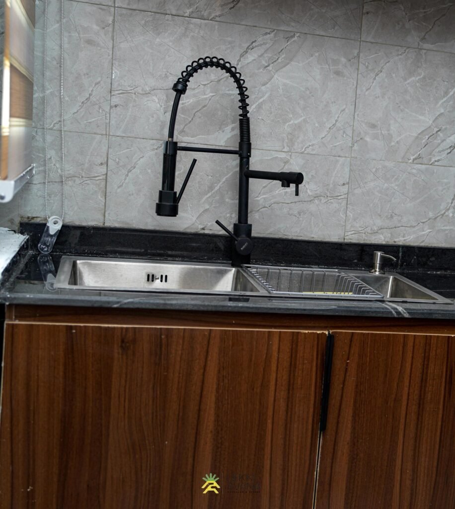 Fully equipped with state-of-the-art appliances and a smart layout, this kitchen is perfect for both seasoned chefs and quick-meal experts. Its sleek design, ample storage, and modern fittings make cooking a pleasure, whether you’re preparing a five-star dish or a simple snack.